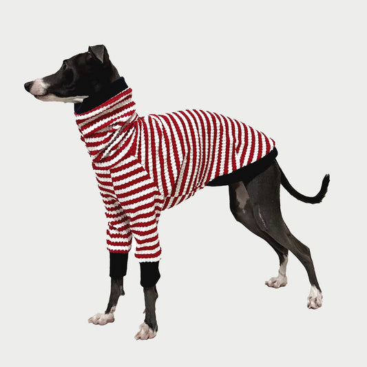 2-Leg | Red-White Striped Cotton Dog Pullover